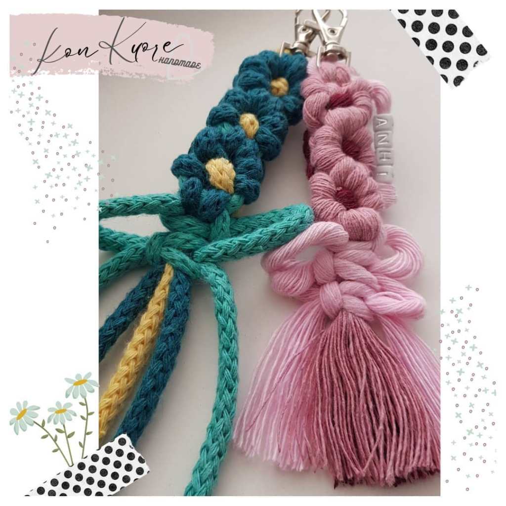 La versatilidad del macramé hace posible tanto crear elementos decorativos de grandes dimensiones, como pequeños elementos que conllevan la misma complejidad de nudos y técnicas que los otros. Los detalles son muy variados, ideales para el uso personal como para obsequiar.